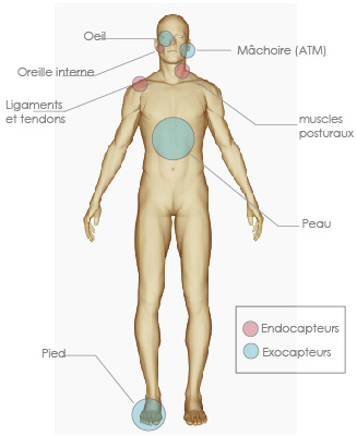 Ainsi l’ensemble de ces capteurs renseigne en permanence le système nerveux central. Celui-ci traitera l’ensemble des informations venant de l’extérieur via les exocapteurs (extérocepteurs) et les informations venant de l’intérieur du corps via les endocapteurs (intérocepteurs et propriocepteurs).